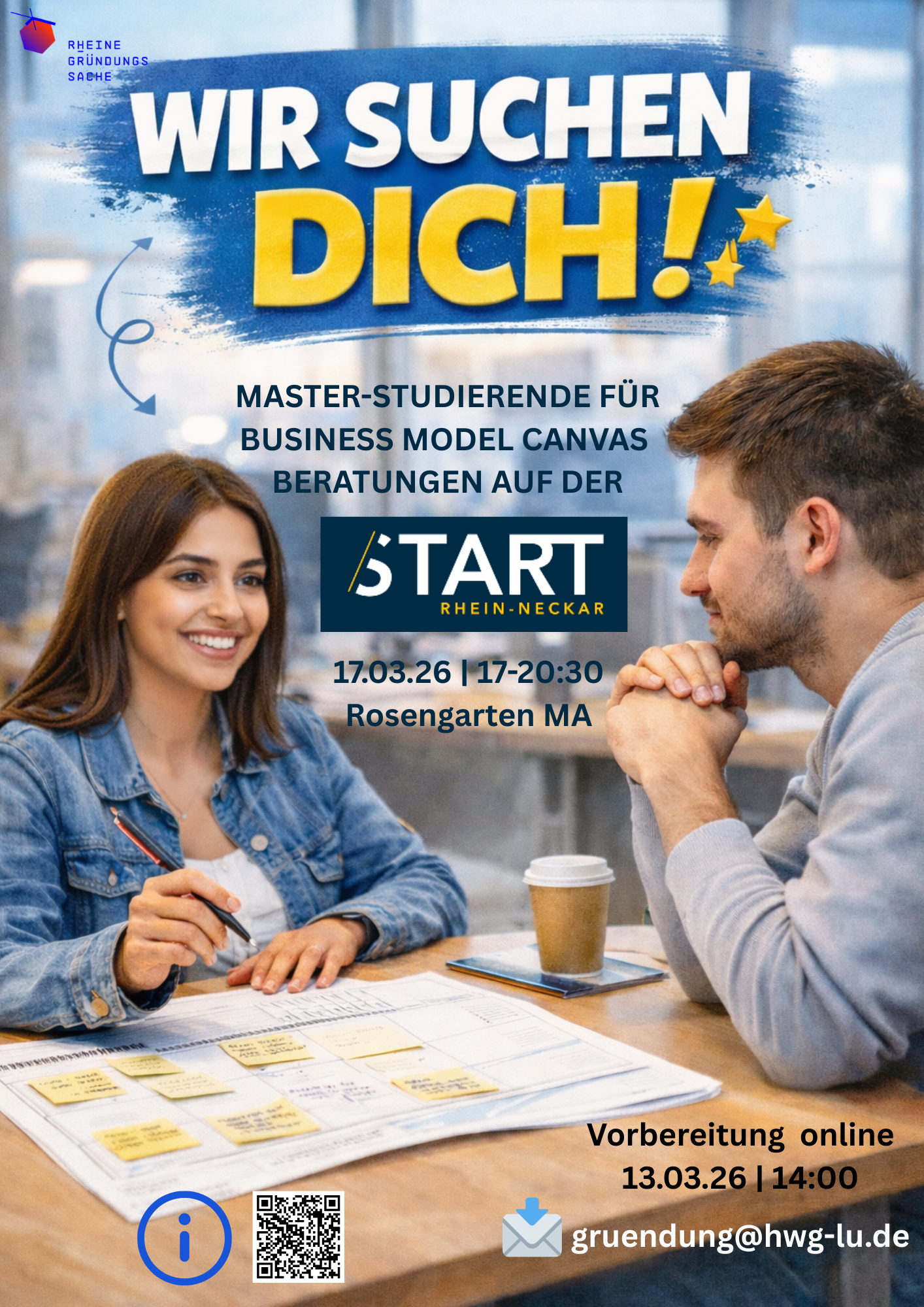 WIR SUCHEN DICH: MASTER-STUDIERENDE FÜR BUSINESS MODEL CANVAS BERATUNGEN AUF DER START RHEIN-NECKAR